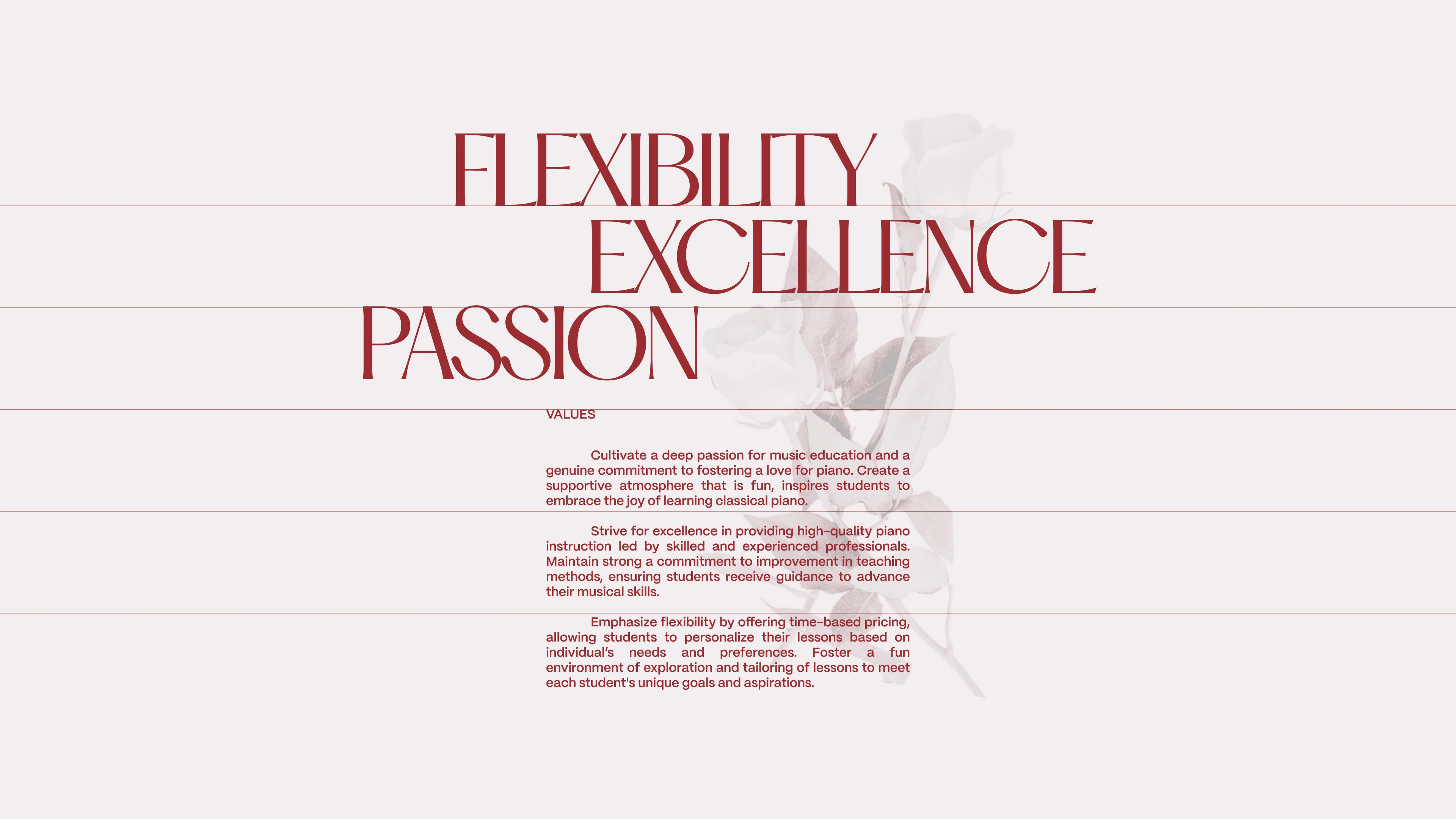 I look for words to represent what I observed in the live performances of pianists. The two main words I came to were passion and elegance. I used the red rose to symbolize this visually.